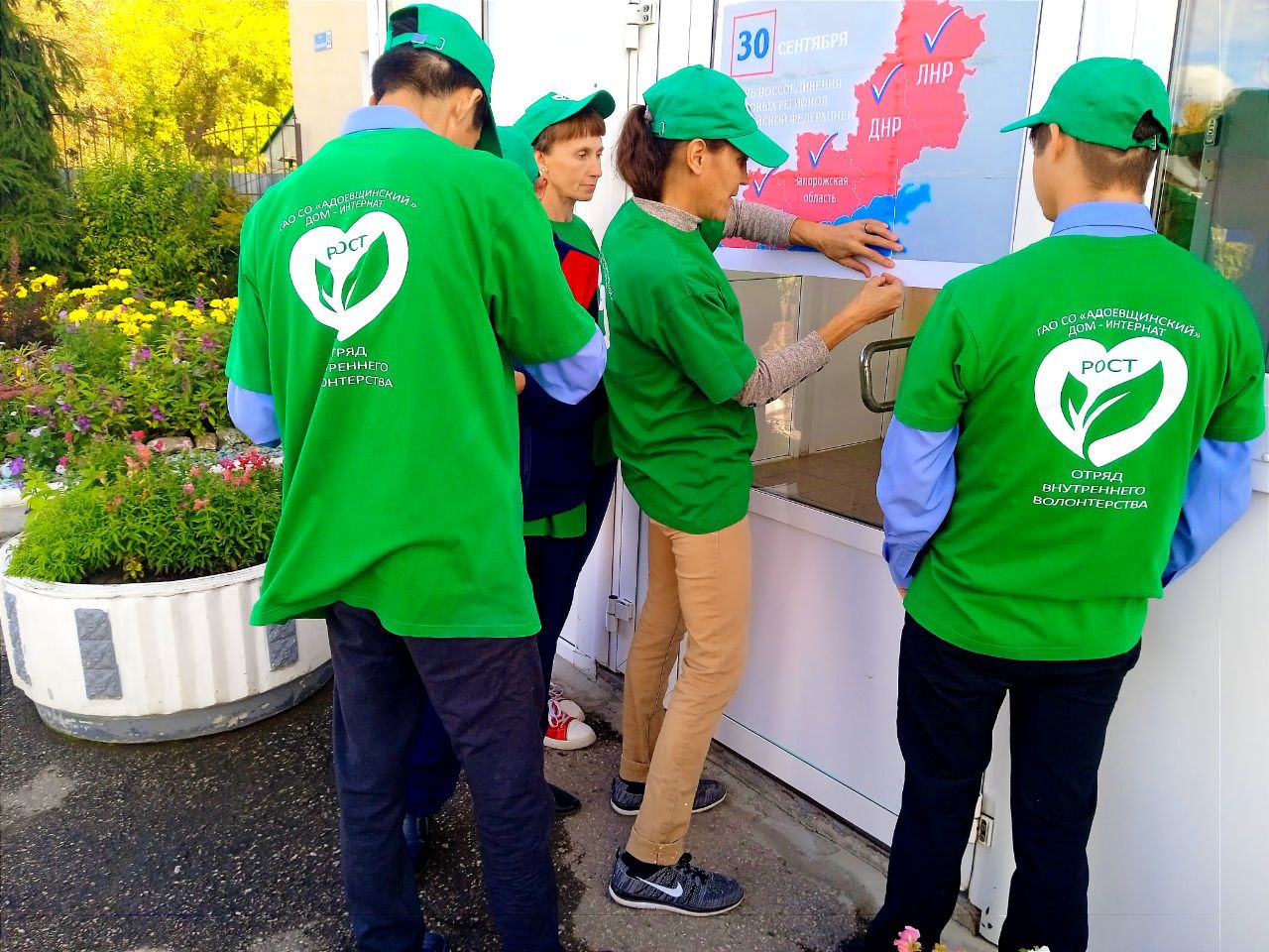 В России 30 сентября отмечается праздник, посвященный событию огромного исторического значения. В этот день в состав Российской Федерации вернулись четыре южных региона – Донецкая и Луганская народные республики, а также Херсонская и Запорожская области. Волонтеры отряда "Рост" ГАУ СО "Адоевщинский дом - интернат" приняли участие во Всероссийской акции «Спасибо, что #МЫВМЕСТЕ", организованной в честь этого значимого события. Совместно с педагогом общеобразовательной школы была организована познавательная беседа об этом событии с учащимися, которые проживают в доме - интернате. Также волонтеры украсили вход в учреждения красочным плакатом.