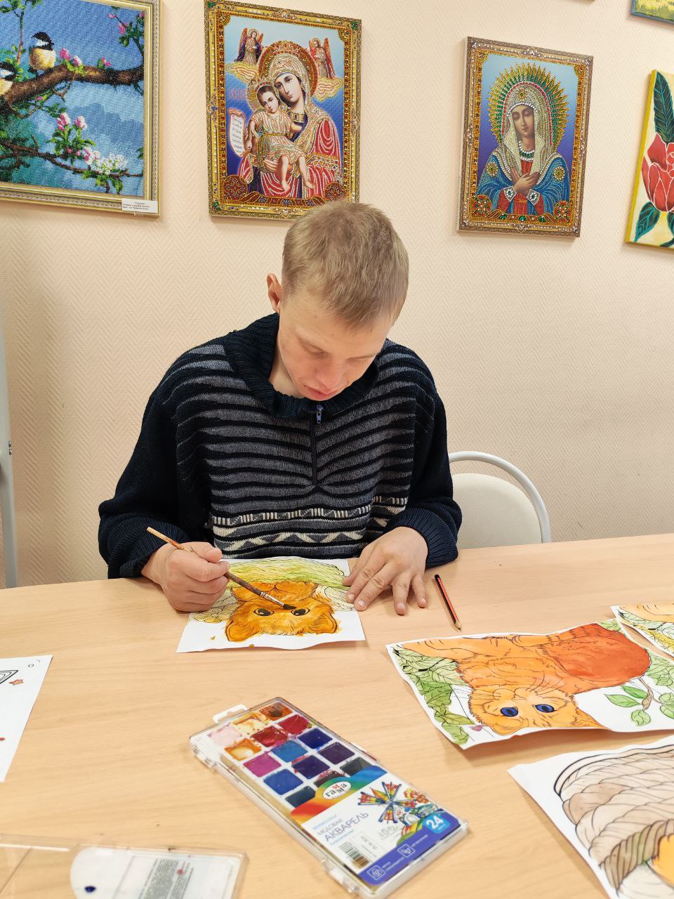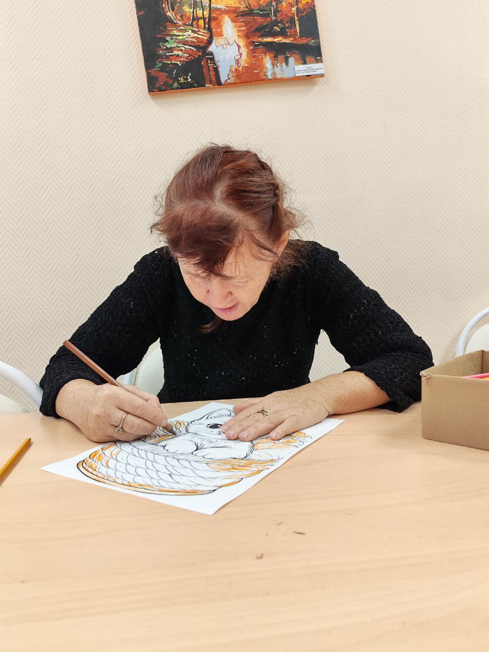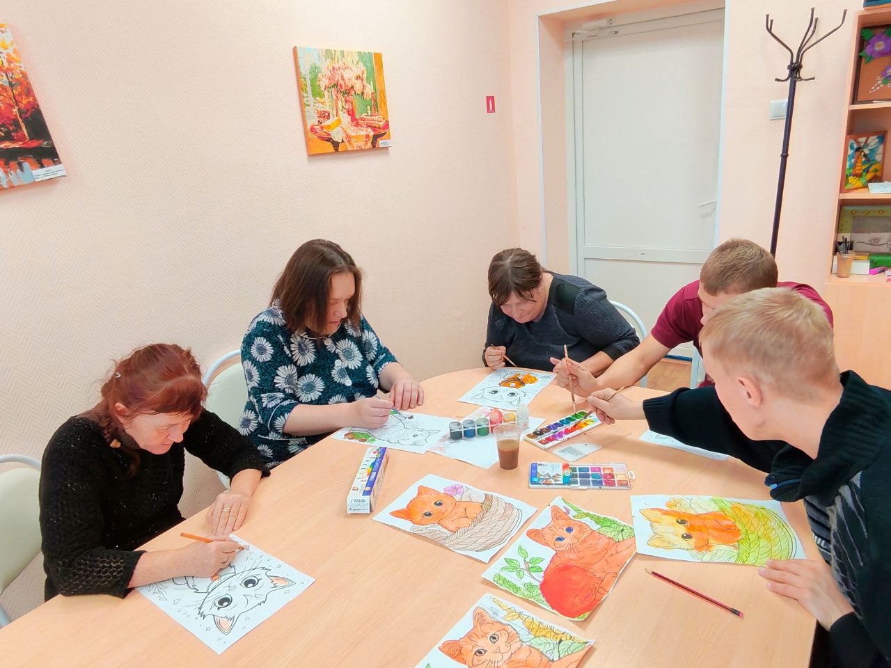 В ГАУ СО " Адоевщинский дом- интернат для престарелых и инвалидов" прошло занятие с элементами АРТ- терапии "Солнечный кот ". Получатели социальных услуг рисовали палитрой: выбирали самые солнечные цвета - красный, жёлтый, оранжевый, смешивая их, получали всевозможные оттенки рыжего. С участниками занятия поговорили, что рыжий цвет- этот цвет солнца, энергии и осени. Отвечали на вопросы викторины о домашних животных, нарисовали рыжих котов. Занятие прошло в дружелюбной обстановке.