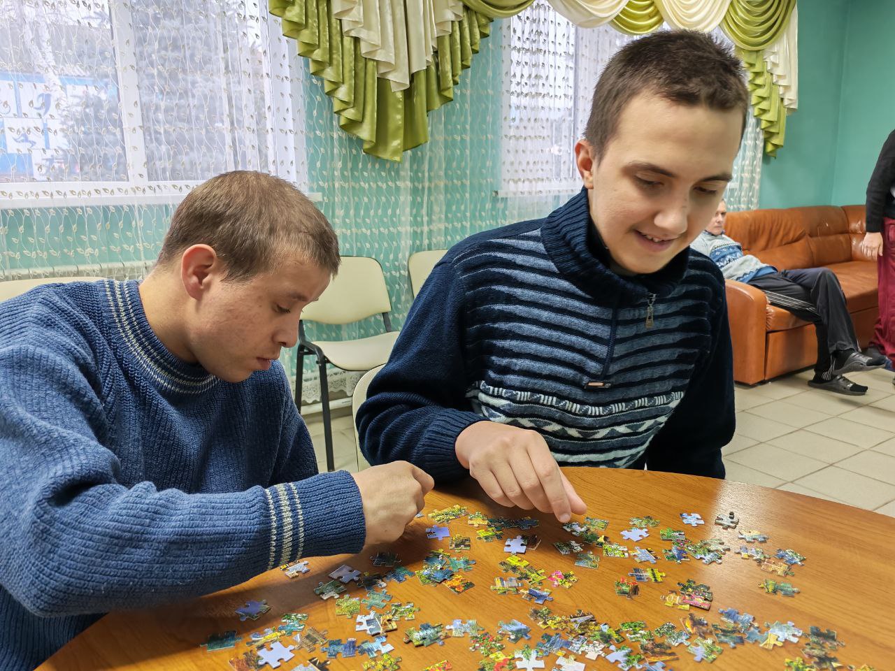 В ГАУ СО " Адоевщинский дом - интернат для престарелых и инвалидов " прошло занятие с психологом. Пазлотерапия- это развивающая форма комплексной реабилитации. Интелектуальные игры полезны всем. Они помогают мыслить, рассчитывать, вспомнить. Это отличная тренировка для мозга, развивающая и восстанавливающая его функции. Жителям интерната пазлы помогают расслабиться психологически и отвлечься от повседневных проблем.