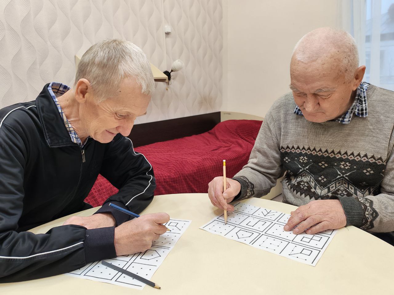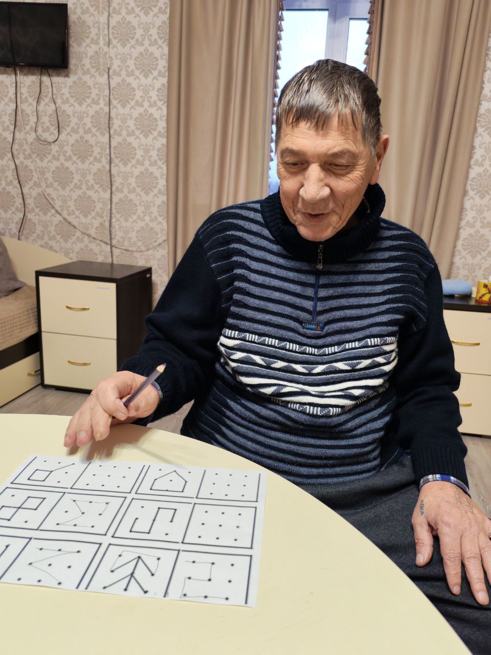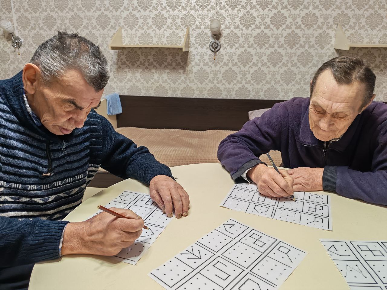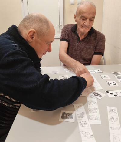 Для профилактики деменции в ГАУ СО " Адоевщинский дом - интернат для престарелых и инвалидов " на индивидуальных занятиях психолога проводились диагностические методики и различные коррекционные упражнения. Особенно пожилым людям понравились такие методики как "Головоломка" и "Соединение по точкам". С помощью этих рисуночных методик раскрывается не только эмоциональный мир получателей социальных услуг, но и оценивалось их когнитивное состояние. Для активизации мыслительной деятельности психолог провела коррекционное упражнение "Назови животное и цифру". В этом упражнении тренируется глазомер и мелкая моторика пальцев рук, закрепляется порядковый и обратный счёт, улучшаются психические процессы пожилых людей. ( внимание, память, мышление, восприятие).