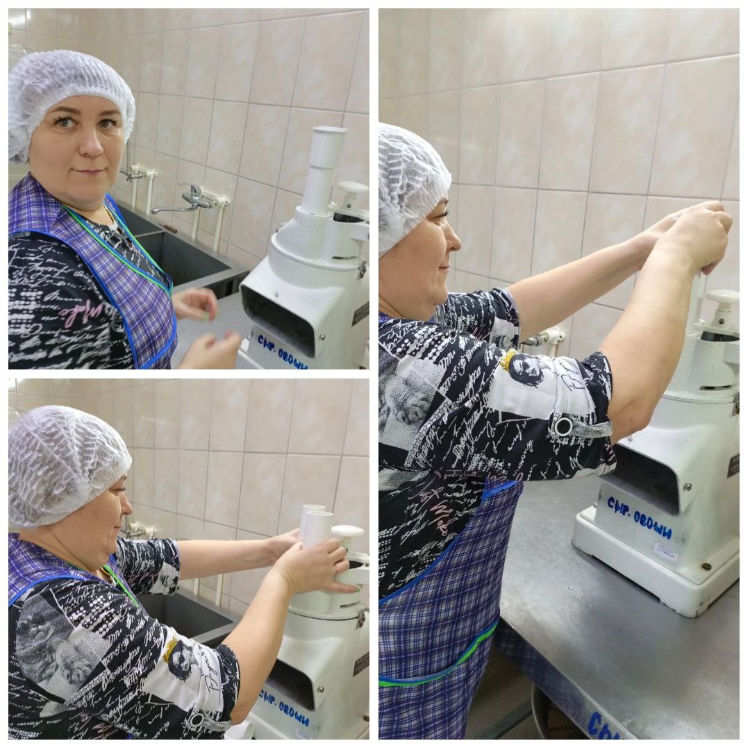 Цех оснащён различным оборудованием: картофелечистка, машина для нарезки овощей с насадками.