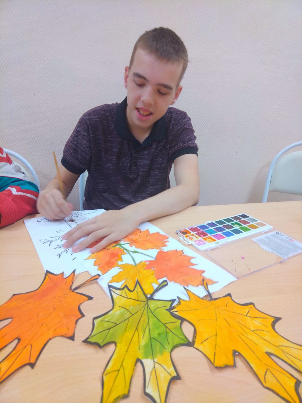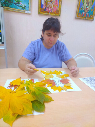 Красота осени в рисунках.  В ГА У СО « Адоевщинский- дом интернат для престарелых и инвалидов», прошел кружок рисования осенних листьев для получатели социальных услуг, а также психолог рассказала о самом красивом времени года - осень.