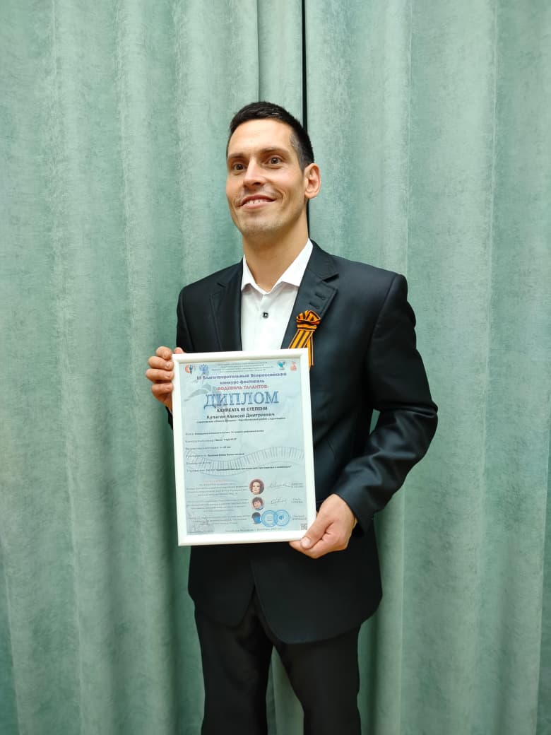 Получатели социальных услуг ГАУ СО "Адоевщинский дом-интернат для престарелых и инвалидов" приняли участие в ||| Всероссийском Благотворительном фестивале-конкурсе, приуроченном к празднованию Дня народного единства "Водевиль талантов", 2025 год. Конкурс проходил при поддержке Российского союза авторов-исполнителей, Министерства культуры субъектов РФ, Министерства социальной защиты населения субъектов РФ. Представленное на конкурс вокальное исполнительство, военно-патриотическая песня "Родина-мать зовёт" в исполнении Кулагина Алексея и Маркевича Андрея получила диплом лауреата || степени. На конкурс вокальное исполнительство, эстрадно-джазовый вокал песня "Радуйся" в исполнении Кулагина Алексея получила диплом лауреата ||| степени. Также на конкурс было представлено хореографическое исполнительство, народный танец "От Волги до Енисея..." в исполнении Бутылкина Глеба и Луниной Антонины получил диплом лауреата || степени. Мы от всей души поздравляем наших победителей! Желаем всем творческих успехов и покорения новых вершин!
